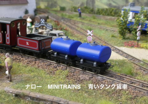 車輪を2線式に交換して、2線の線路で上の電気機関車に牽かせている。
